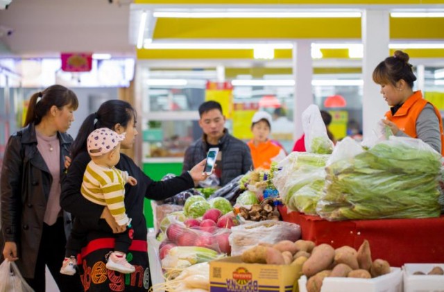 10月18日,呼和浩特市市民正在選購(gòu)新鮮果蔬。10月16日,呼和浩特市玉泉區(qū)通達(dá)綜合農(nóng)貿(mào)便民市場(chǎng)開(kāi)業(yè),該市場(chǎng)經(jīng)營(yíng)面積近3000平方米,設(shè)有蔬菜區(qū)、牛羊肉區(qū)、調(diào)料區(qū)、主食區(qū)、水果區(qū)、水產(chǎn)區(qū)、面點(diǎn)區(qū)等,還專(zhuān)門(mén)設(shè)有快餐區(qū),共127個(gè)攤位、70家商戶(hù)。市場(chǎng)采用超市的經(jīng)營(yíng)方式,為老百姓打造安全舒適、環(huán)境優(yōu)美的購(gòu)物環(huán)境。