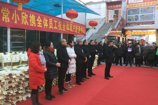 儀式結(jié)束后,所有商戶,工作人員盡然有序的離場(chǎng),由經(jīng)營發(fā)展部門和環(huán)境服務(wù)部同事共同分成四個(gè)小組逐一將大米送到每家每戶