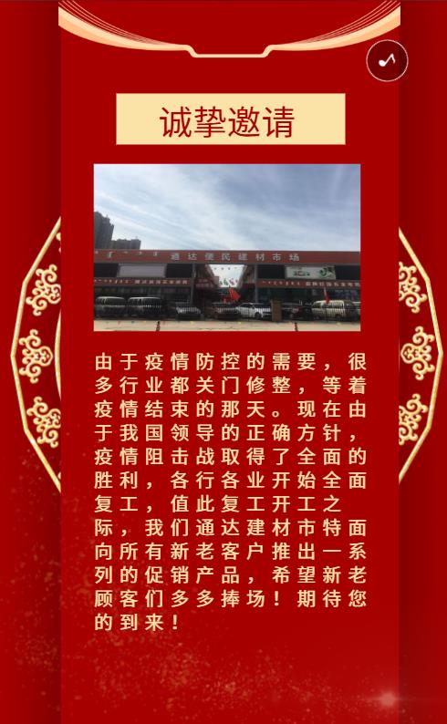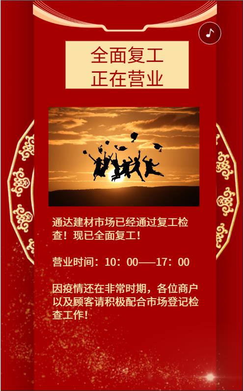 通達建材交易市場全面復工