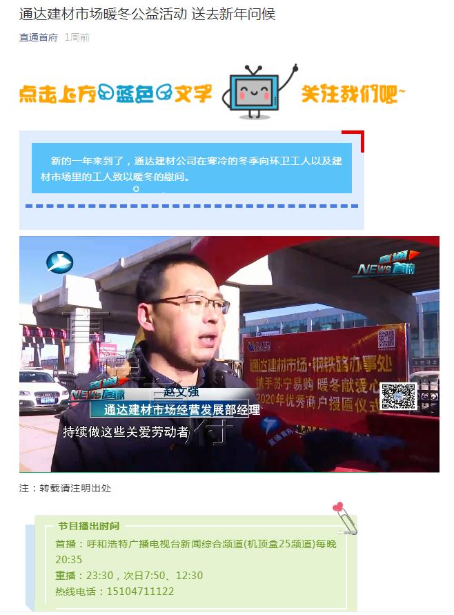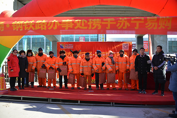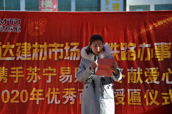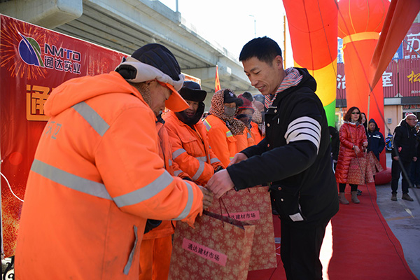 2020年11月29日舉行了通達(dá)建材市場2020年暖冬活動(dòng)以及優(yōu)秀商戶授匾儀式。整體活動(dòng)分為三部分,1.由市場主導(dǎo)定制沖鋒衣,蘇寧易購出資,共同為市場以及周邊裝卸工提供暖冬定制沖鋒衣。2.聯(lián)合鋼鐵路辦事處,召集周邊環(huán)衛(wèi)工人,發(fā)放采購好的保暖 慰問品和定制水杯。3.公布優(yōu)秀商戶名單,并進(jìn)行授匾儀式。王總在活動(dòng)當(dāng)中講到“我們要共同努力克服每一個(gè)困難,只要路的對的,就不怕路遠(yuǎn)”樹立了商戶對未來的信心。整體過程由首府直通車全程參與,活動(dòng)期間鋼鐵路辦事處領(lǐng)導(dǎo)的講 話也是非常認(rèn)可我們建材市場的工作。