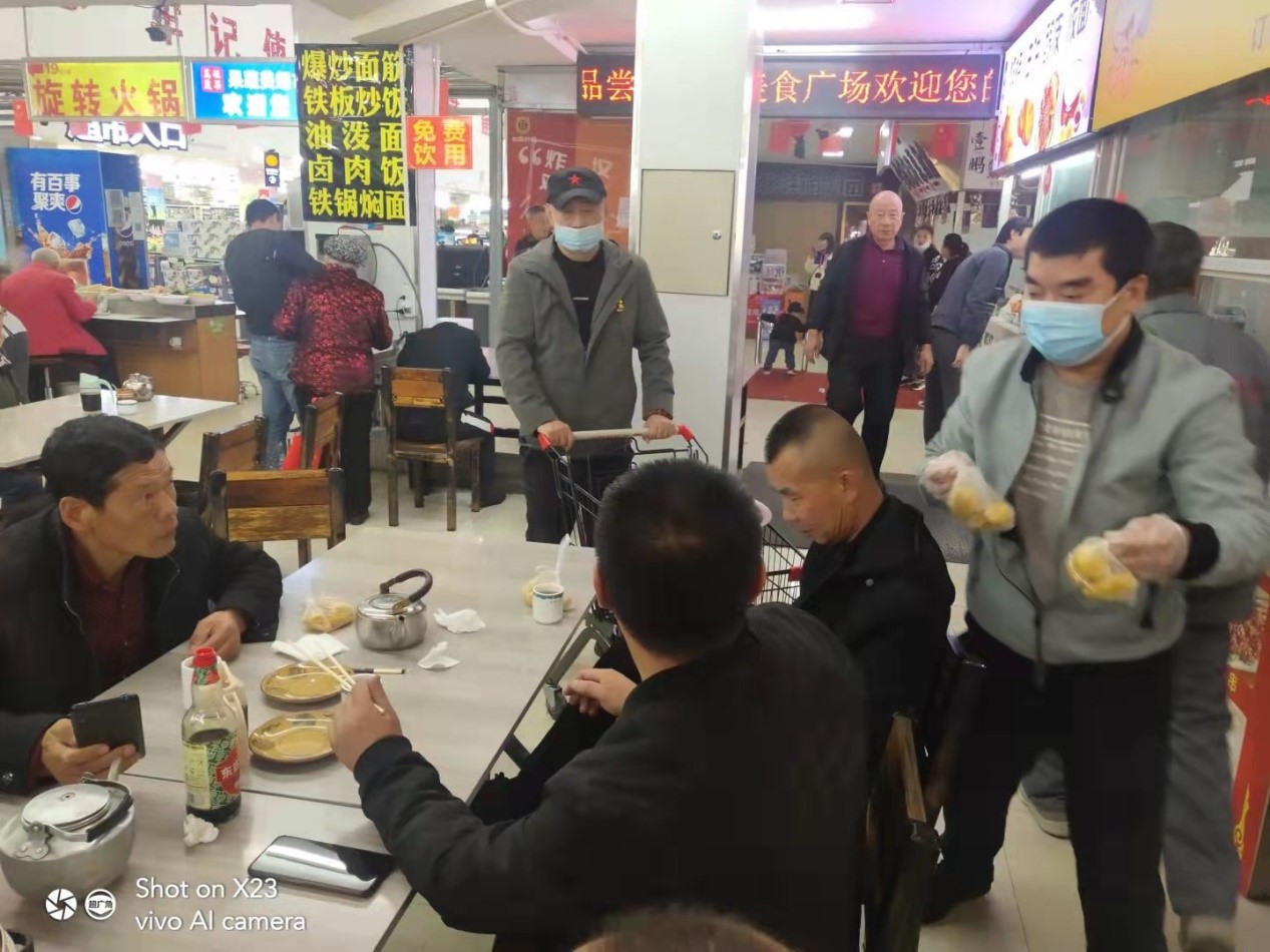 今天是九·九重陽節(jié),美食檔口客流增加,市場也為就餐的顧客免費(fèi)贈(zèng)送炸糕一份。