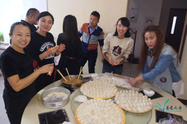 會議結(jié)束后,公司領(lǐng)導(dǎo)和善愛之舟小組成員共同配合準(zhǔn)備晚餐,大家情緒高漲,包餃子的樣子各式各樣精美別致,此次活動(dòng)增強(qiáng)了團(tuán)隊(duì)的團(tuán)結(jié)協(xié)作能力,同時(shí)也增進(jìn)了彼此間的感情。
