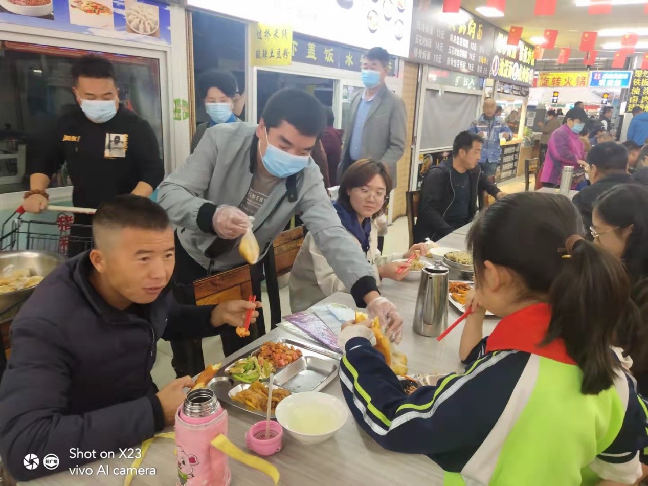 今天是九·九重陽節(jié),美食檔口客流增加,市場(chǎng)也為就餐的顧客免費(fèi)贈(zèng)送炸糕一份。