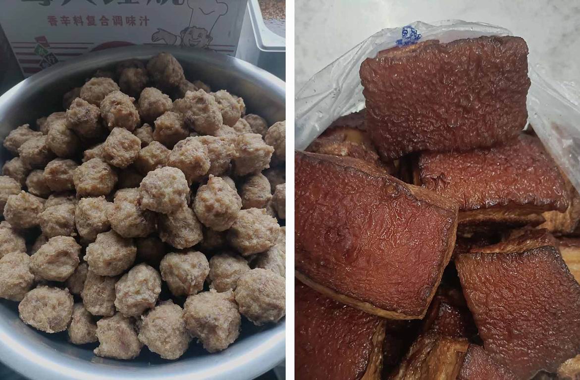 端午節(jié)期間,為回饋消費者,長客美食廣場聯(lián)合果蔬美超市,為消費者免費加工燒肉、丸子,凡在果蔬美超市購買生鮮肉十斤以上的顧客,由美食廣場商戶免費加工,活動期間免費肉食加工共計70.99公斤,其中燒肉加工49.86公斤,丸子加工21.13公斤。