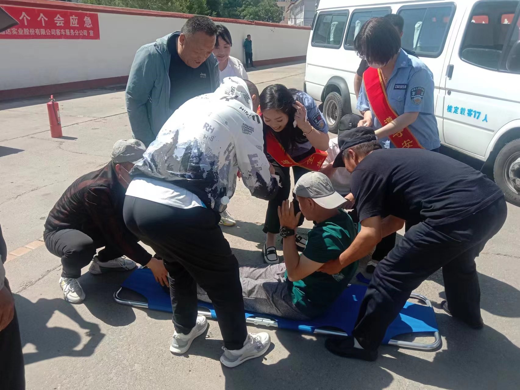 演練時間于2023年6月20日開始,為期一天,通過成立演練指揮部。負責(zé)本次演練的策劃、組織、指揮、調(diào)度、物資籌備、場地布置等工作。通過模擬事故情景設(shè)置,讓大家身臨其境。 此次模擬交通事故應(yīng)急演練時間設(shè)為:2023年6月20日10:30分兩臺大客車相向行駛發(fā)生碰撞事故,造成乘客1人受重傷,5人受輕傷的一般交通事故。 事故發(fā)生后,駕駛員第一時間查看受傷人員情況后,然后立刻報警,同時電話通知公司安全負責(zé)人或安全責(zé)任人,立刻保護事故現(xiàn)場,并在事故車前后150米外擺放反光安全三腳架。駕駛員或乘務(wù)員立刻撥打122報警、撥打120請求醫(yī)療救援,撥打公司安全負責(zé)人電話,說明事故現(xiàn)場情況,請求公司支援。
