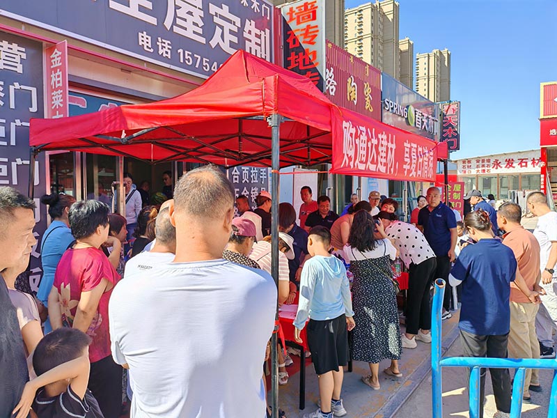 本次活動于2024年7月13日正式拉開帷幕,旨在通過一系列優(yōu)惠措施和清涼福利,回饋廣大商戶長期以來對通達(dá)建材的支持與厚愛?;顒悠陂g,凡是在通達(dá)建材門店經(jīng)營的商戶,或均可享受專屬的清涼禮包,禮包內(nèi)包含防暑降溫的必備物品,如西瓜、綠豆、白糖等。同時進(jìn)市場內(nèi)消費的消費者,掃碼關(guān)注“通達(dá)建材交易市場”官方抖音號,可獲得專屬清涼禮包一份。本次活動,讓每一位客戶在炎炎夏日中感受到通達(dá)建材的關(guān)懷與溫暖。